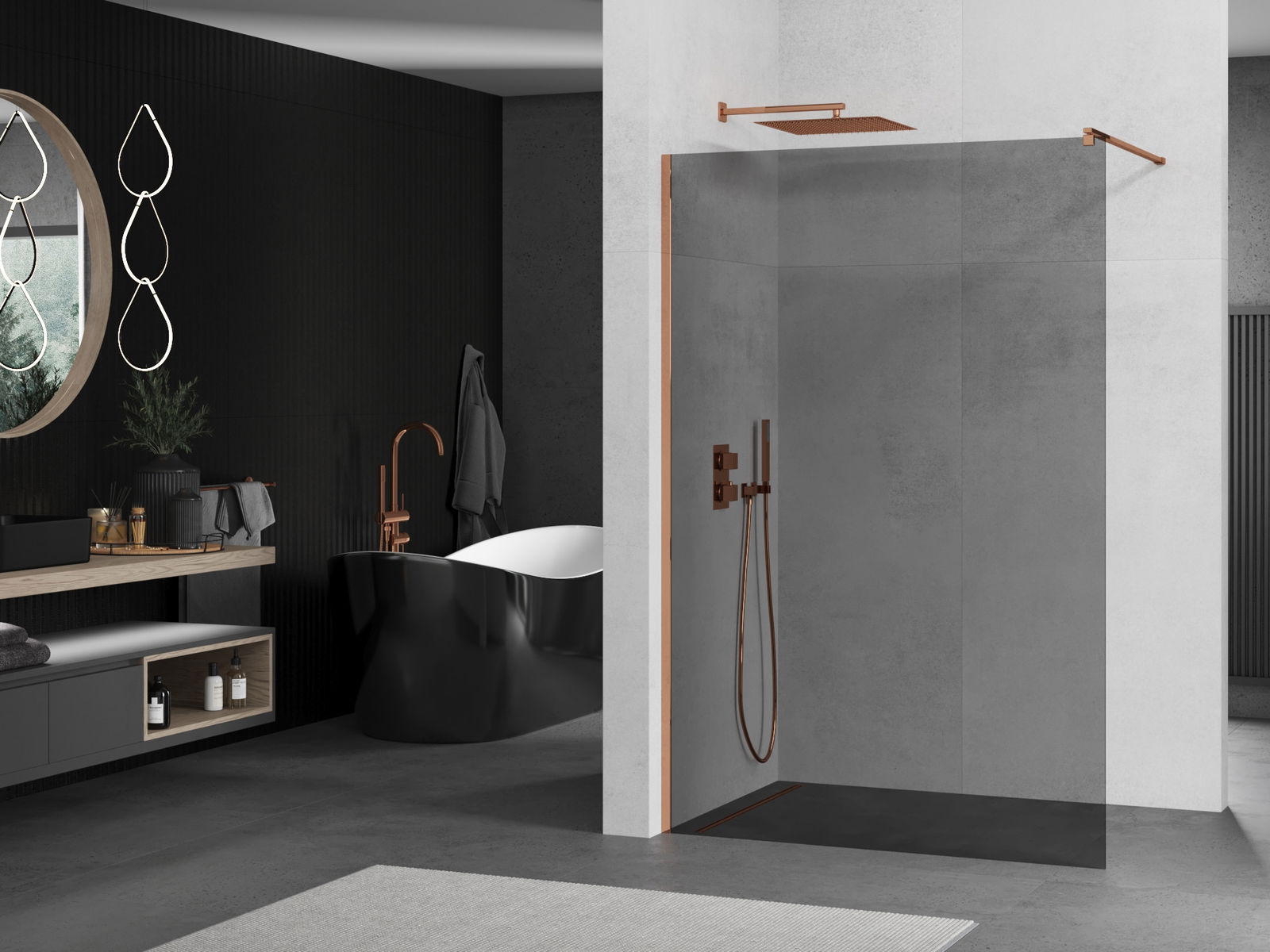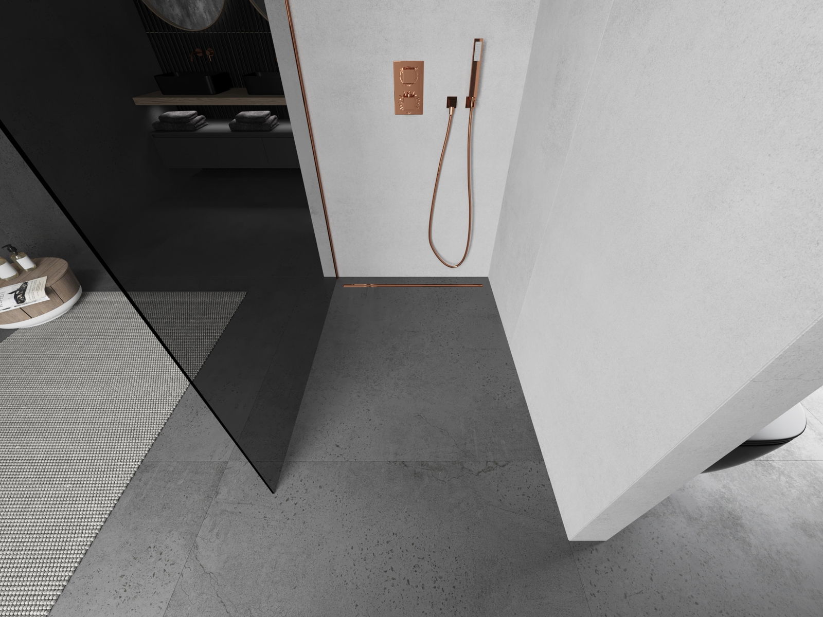 Mexen Kioto paroi de douche Walk-in 130 x 200 cm, graphite 8 mm, or rose - 800-130-101-60-40