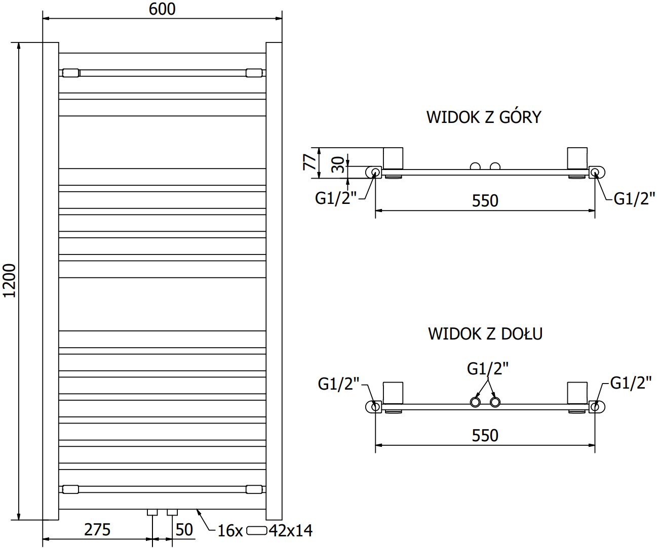 Mexen Uran est un élégant radiateur de salle de bain avec des dimensions impressionnantes de 1200 x 600 mm et une puissance de 492 W, fini dans une couleur chrome élégante. Fabriqué en acier durable, résistant à la corrosion grâce à un revêtement de haute qualité. Le radiateur offre une flexibilité grâce à son entraxe de raccordement bas et milieu et la possibilité d'installation d'une résistance. Adapté pour fonctionner à une température élevée allant jusqu'à 95°C et à une pression allant jusqu'à 0,4 Mpa. Les accessoires de montage nécessaires sont inclus.