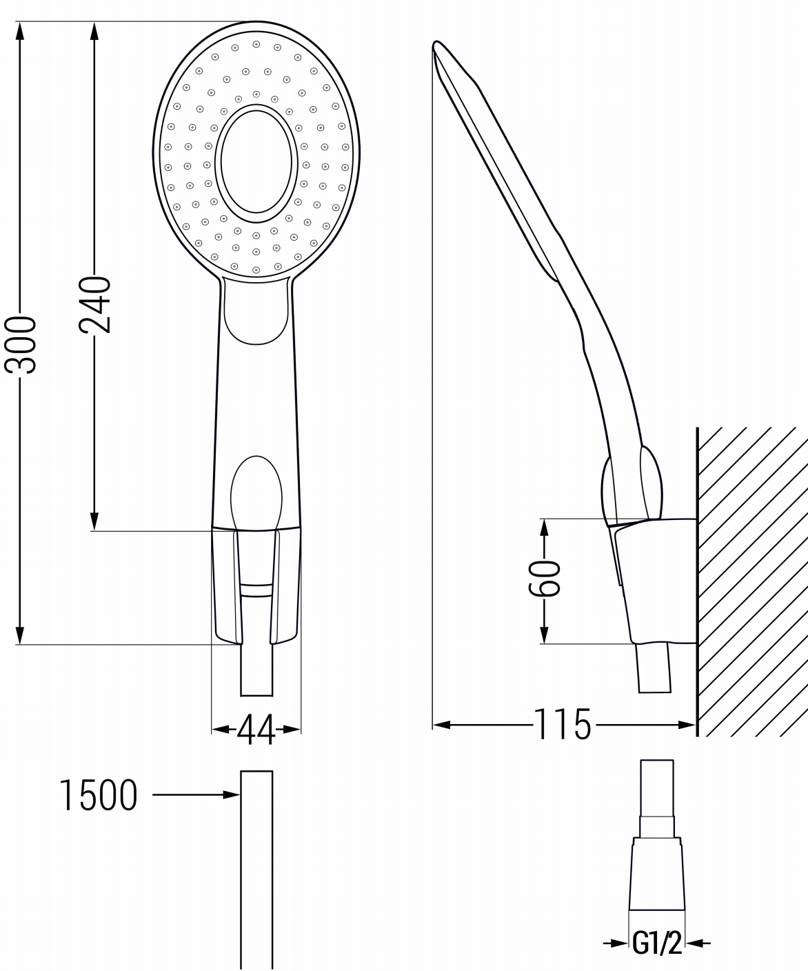 Le pommeau de douche est doté d'un jet pluie. Ce jet imite la pluie naturelle et s'écoule uniformément sur le corps. Il procure une sensation douce et relaxante pendant le bain, qui devient un véritable moment de détente.