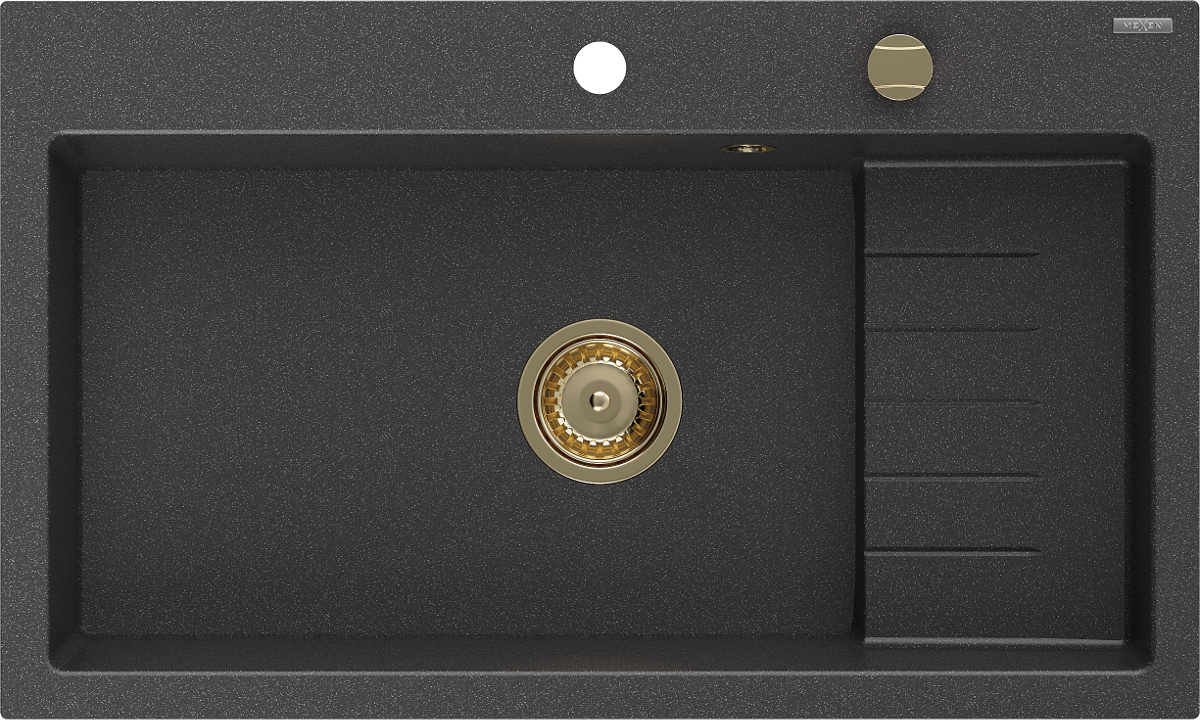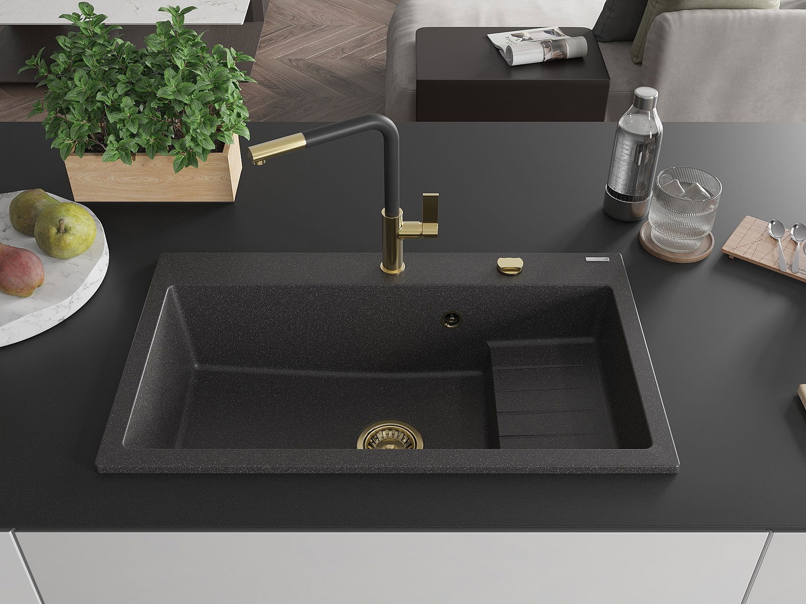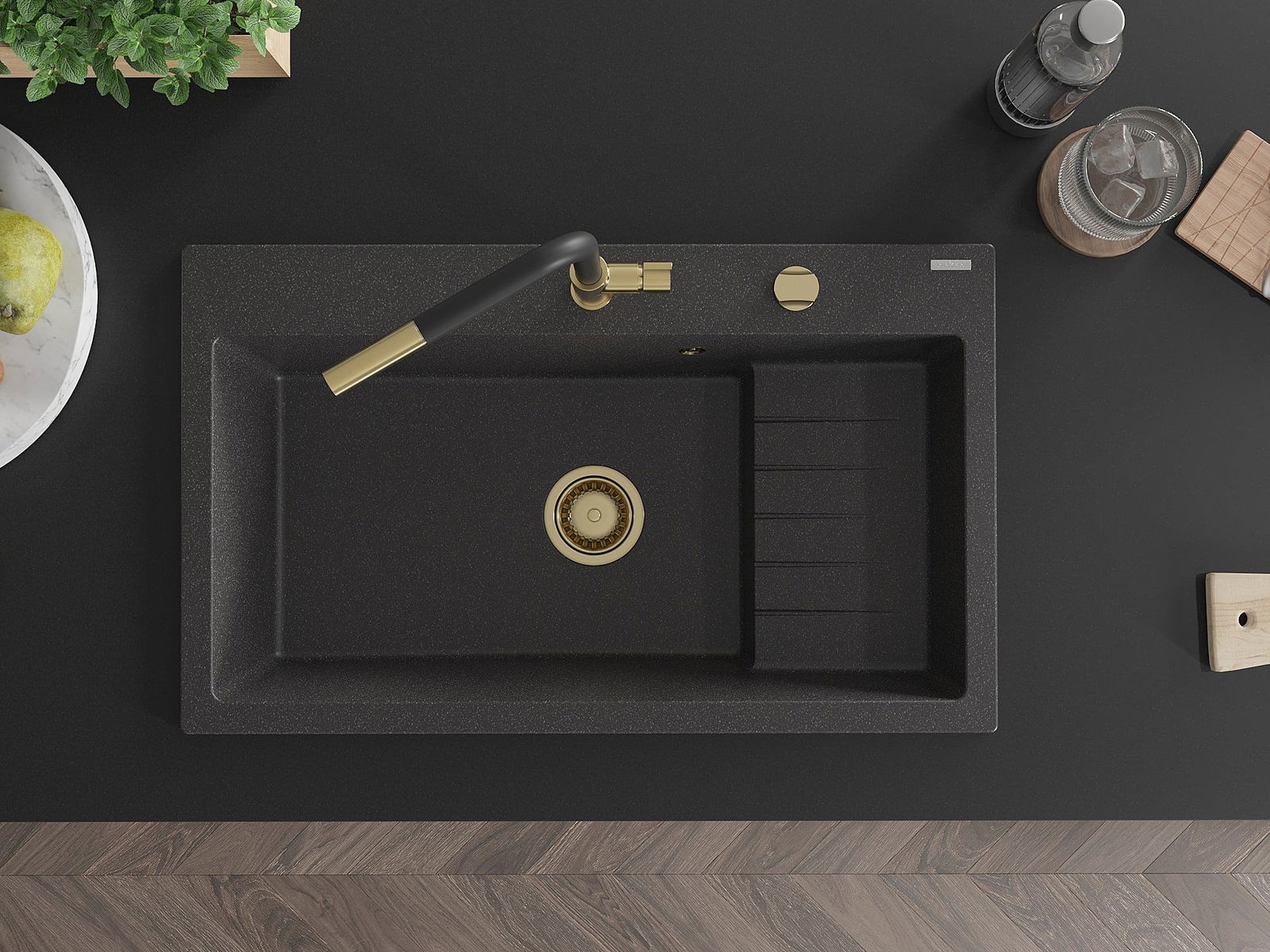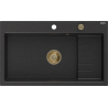 Mexen Omar évier en granit 1 bac 800 x 480 mm, noir moucheté, siphon doré - 6520801005-76-G