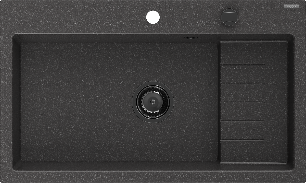 Mexen Omar évier en granit 1 bac 800 x 480 mm, noir moucheté, siphon noir - 6520801005-76-B