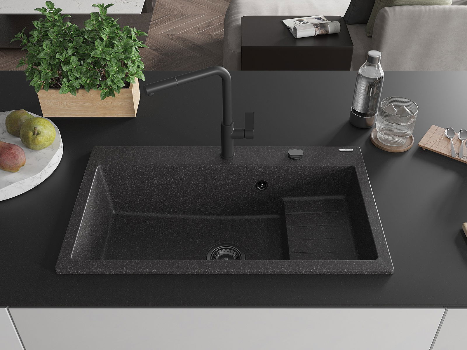 L'évier a été fabriqué en granit de haute qualité. Il constitue un complément élégant et surtout pratique à toute cuisine, quel que soit son style. La haute qualité et la durabilité du granit garantissent une utilisation pendant de nombreuses années.