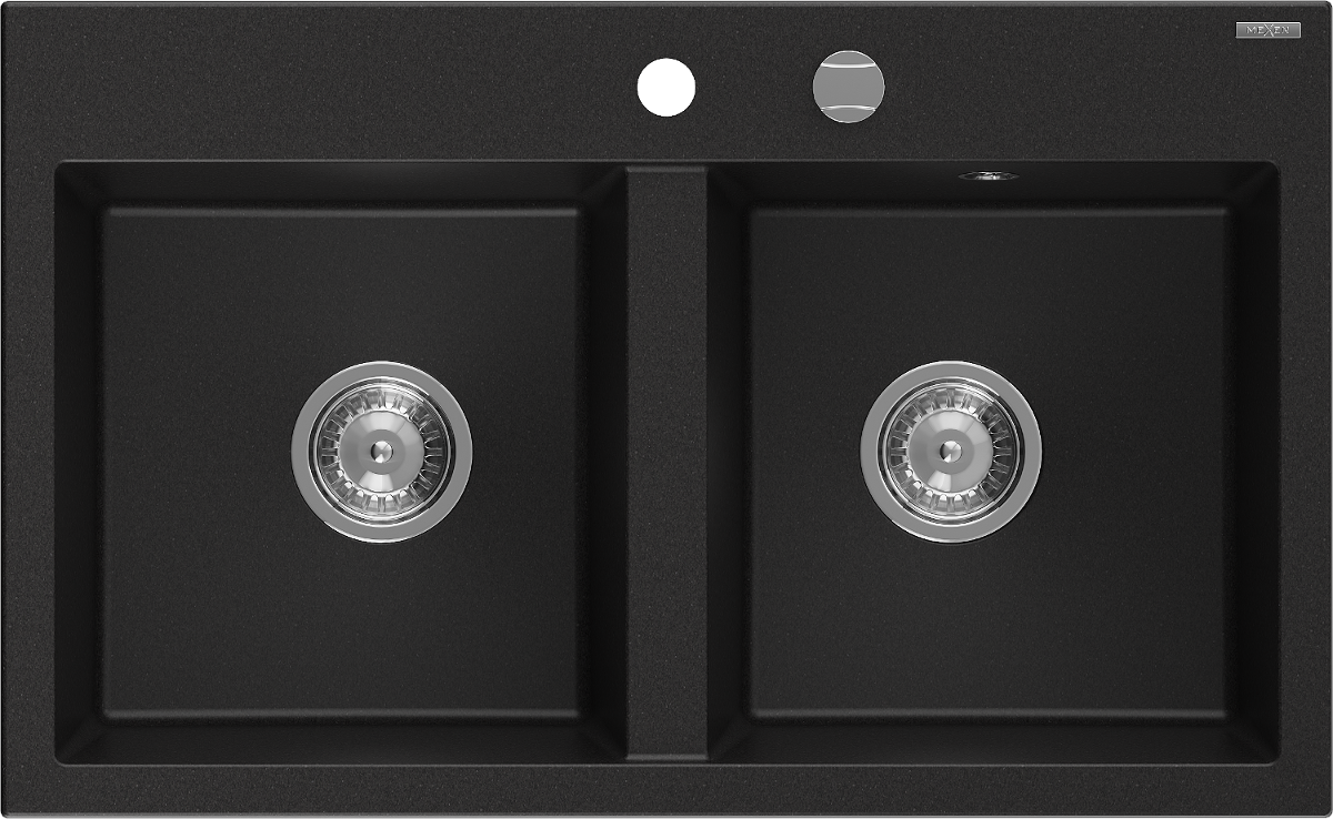 Mexen Hektor évier en granit à 2 bacs 800 x 480 mm, noir, siphon chromé - 6521802000-77