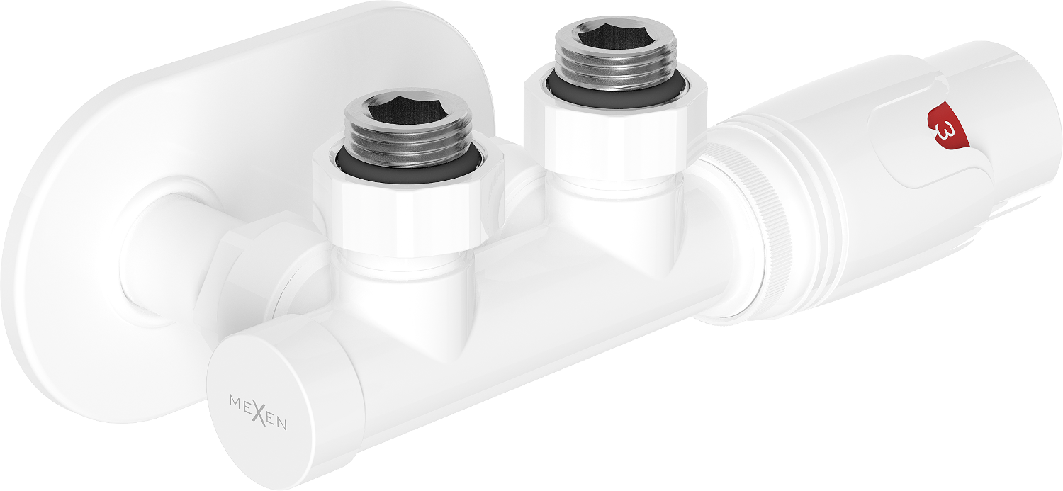 Mexen G00 ensemble thermostatique angulaire avec rosace R, Duplex, DN50, blanc - W907-900-905-20