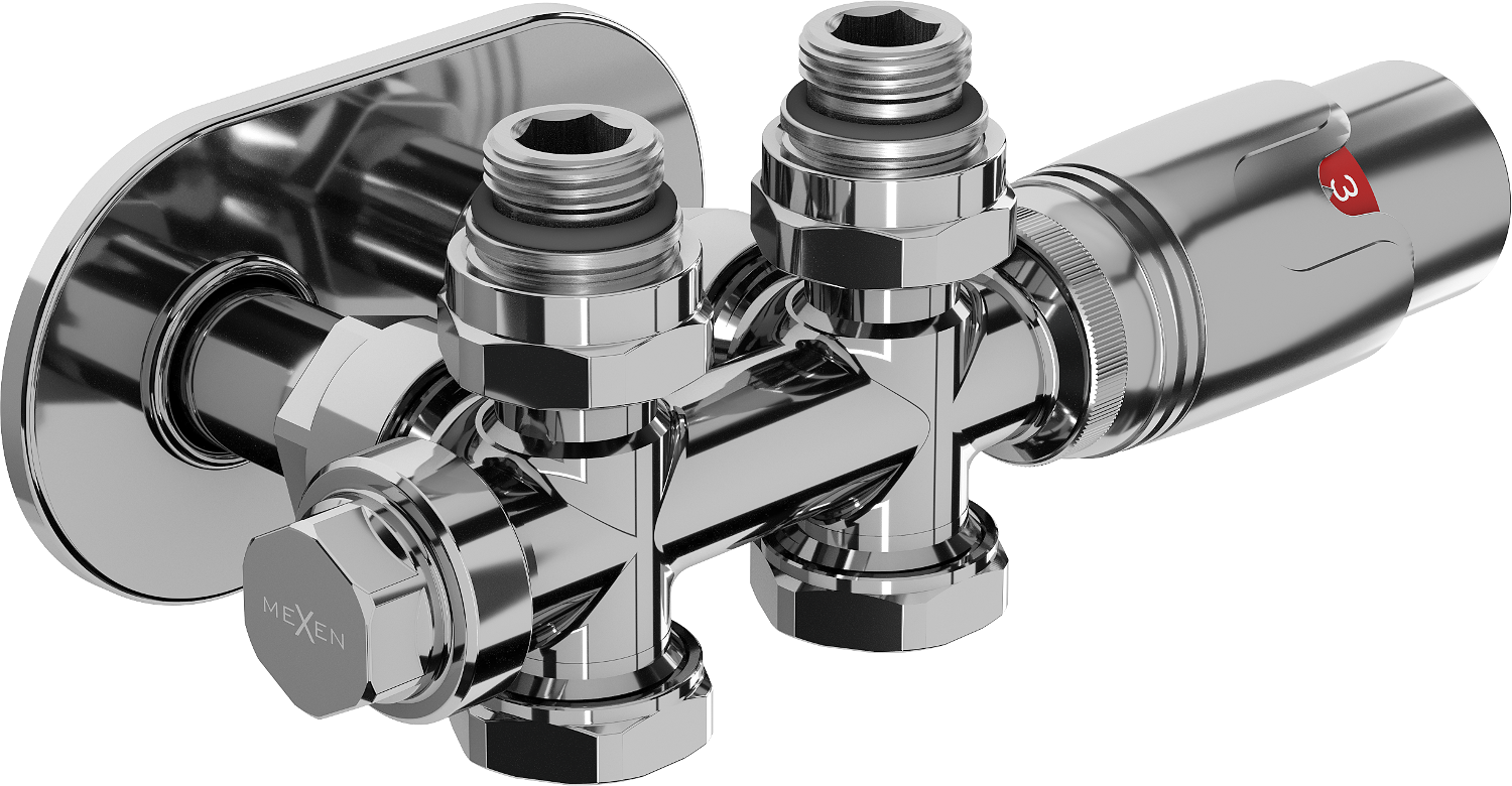 Mexen G00 ensemble thermostatique d'angle/droit avec rosace R, Duplex, DN50, chrome - W908-900-905-01