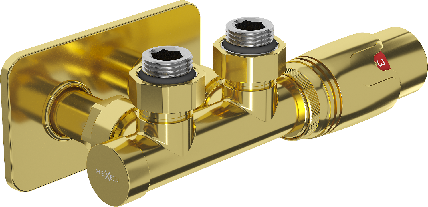 Mexen G00 ensemble thermostatique coudé avec cache S, Duplex, DN50, doré - W907-900-910-50