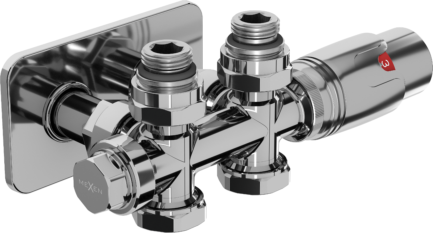 Mexen G00 ensemble thermostatique angulaire/droit avec cache S, Duplex, DN50, chrome - W908-900-910-01