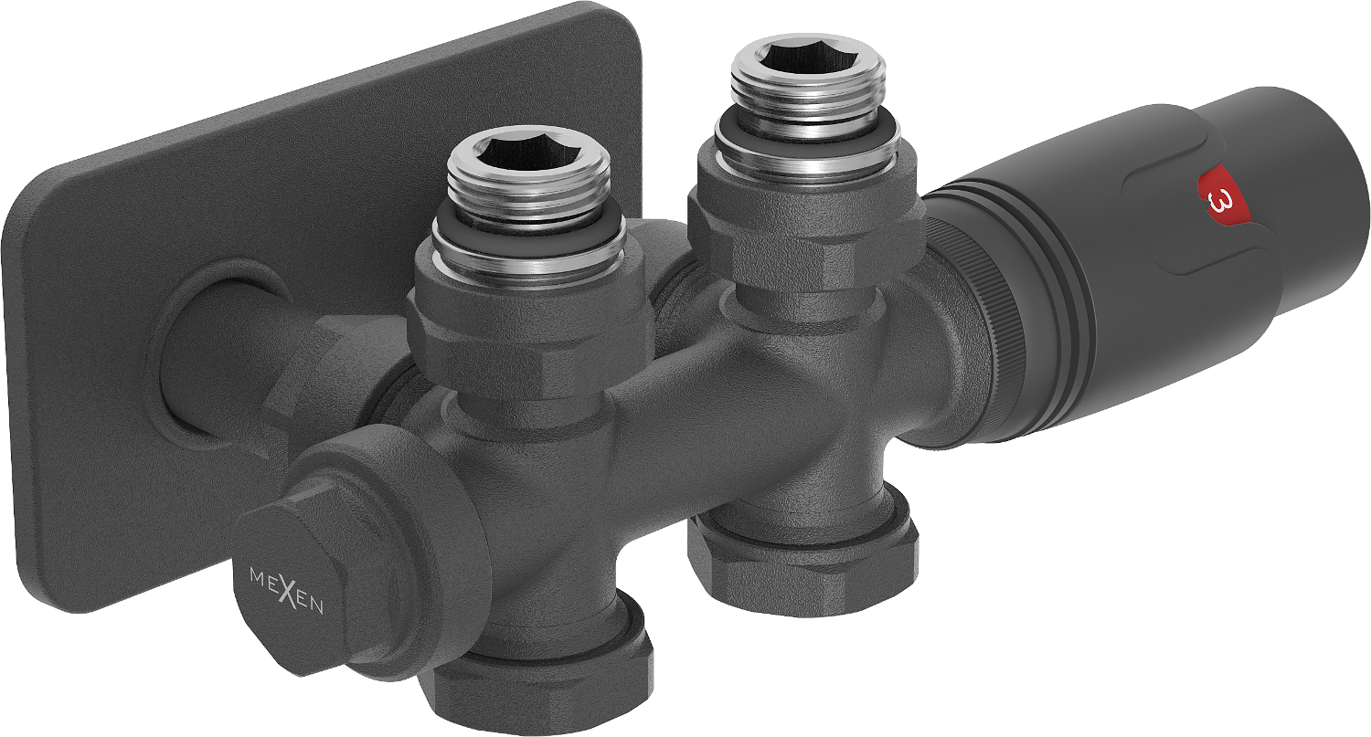 Mexen G00 ensemble thermostatique coudé/droit avec cache S, Duplex, DN50, anthracite - W908-900-910-66