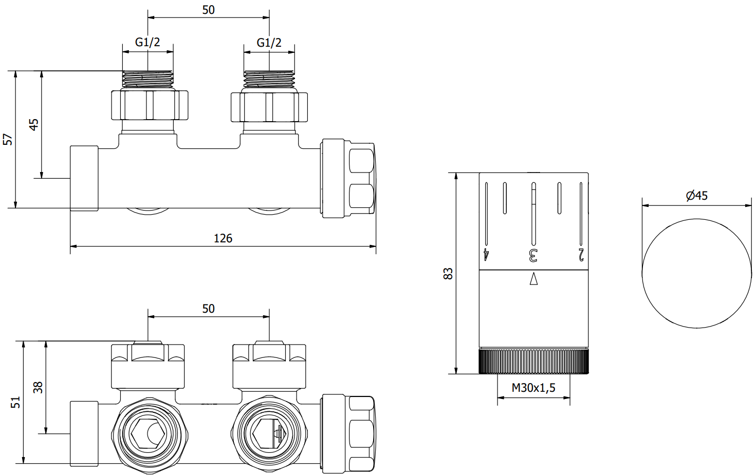 Valve de radiateur d'alimentation et de coupure