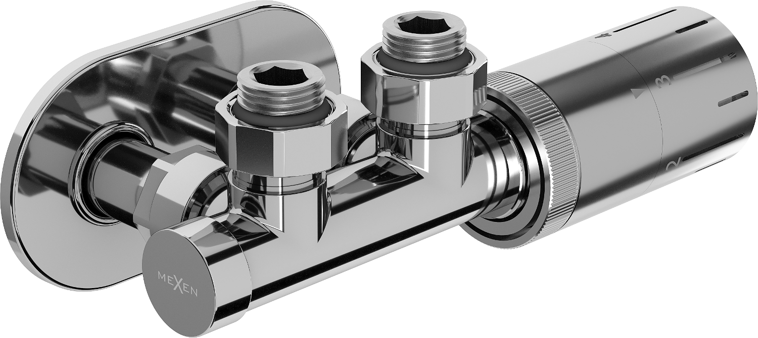 Mexen G05 ensemble thermostatique coudé avec cache R, Duplex, DN50, chrome - W907-958-905-01