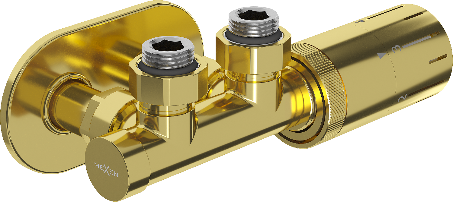 Mexen G05 ensemble thermostatique angulaire avec cache R, Duplex, DN50, doré - W907-958-905-50