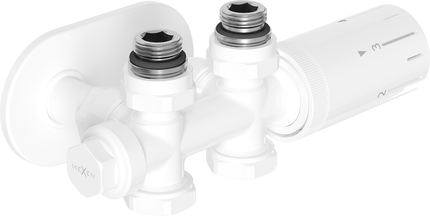 Mexen G05 ensemble thermostatique coudé/droit avec cache R, Duplex, DN50, blanc - W908-958-905-20