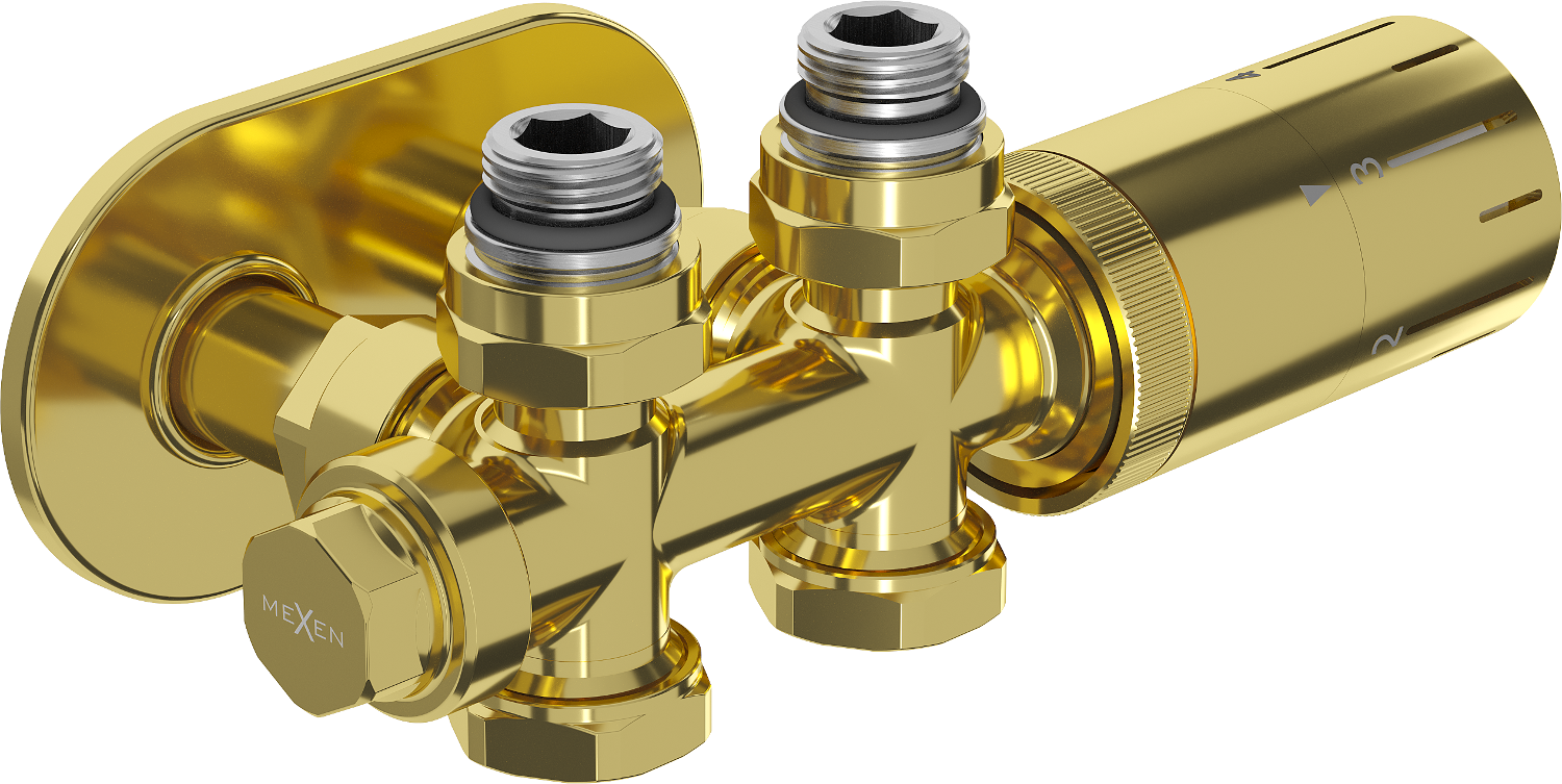 Mexen G05 ensemble thermostatique angulaire/rectiligne avec cache R, Duplex, DN50, doré - W908-958-905-50