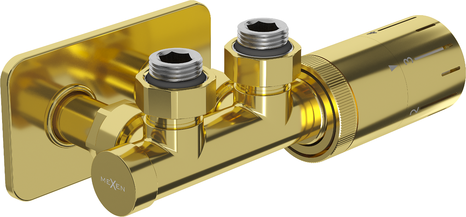 Mexen G05 ensemble thermostatique angulaire avec cache S, Duplex, DN50, doré - W907-958-910-50