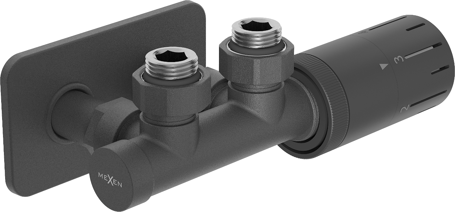 Mexen G05 ensemble thermostatique angulaire avec cache S, Duplex, DN50, anthracite - W907-958-910-66