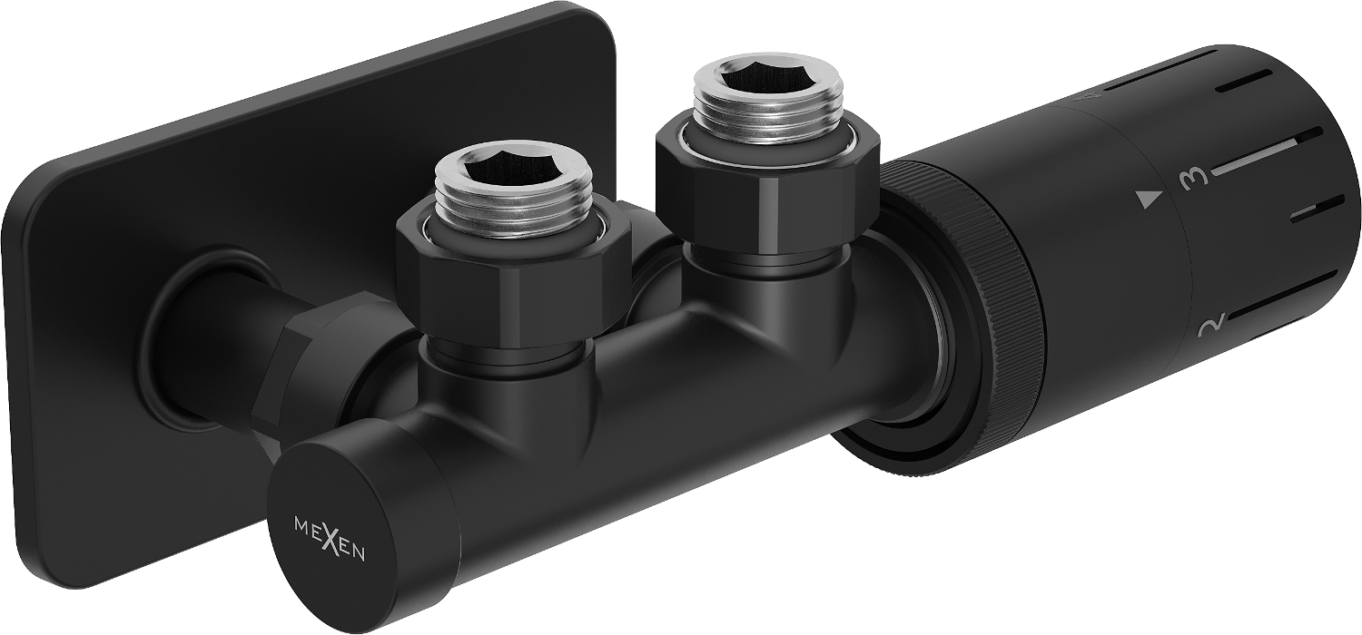 Mexen G05 ensemble thermostatique angulaire avec cache S, Duplex, DN50, noir - W907-958-910-70