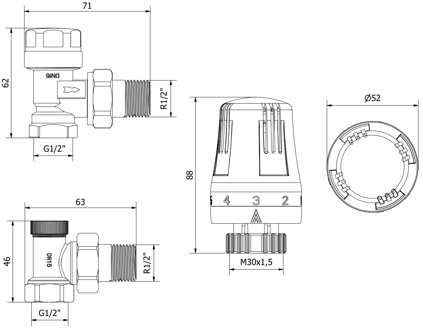 Tête avec une échelle de réglage de la température en 5 niveaux, dans une plage de 0-29 °C, permettant un contrôle précis de la température. C'est une fonction qui permet à l'utilisateur de régler la température ambiante, ce qui se traduit par un confort thermique et des économies d'énergie.