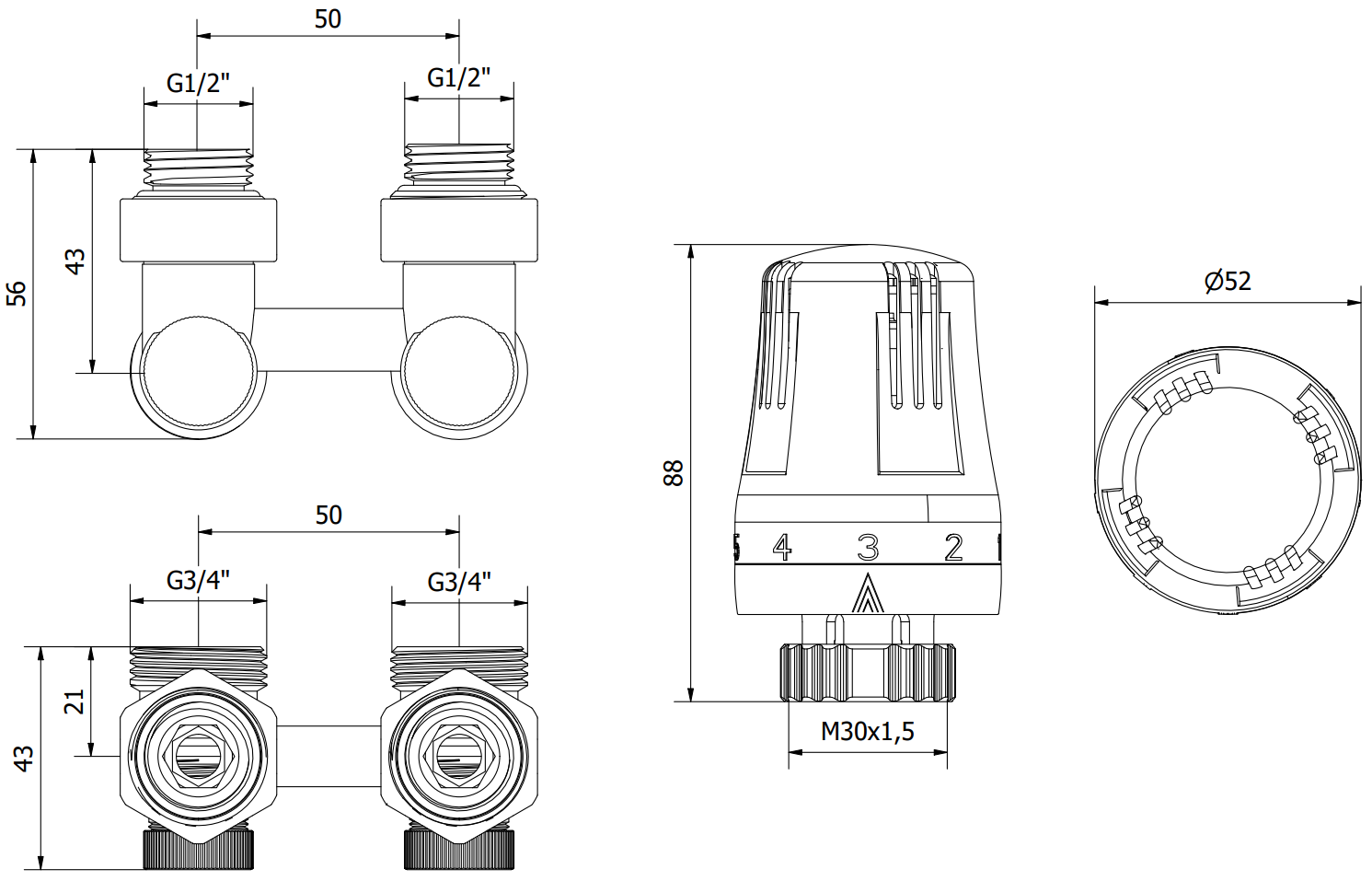 Diamètre de raccordement de la vanne: G 1/2" et G 3/4"