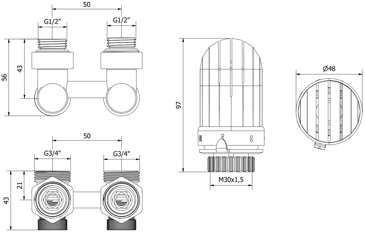 Diamètre de raccordement de la vanne : G 1/2" et G 3/4"