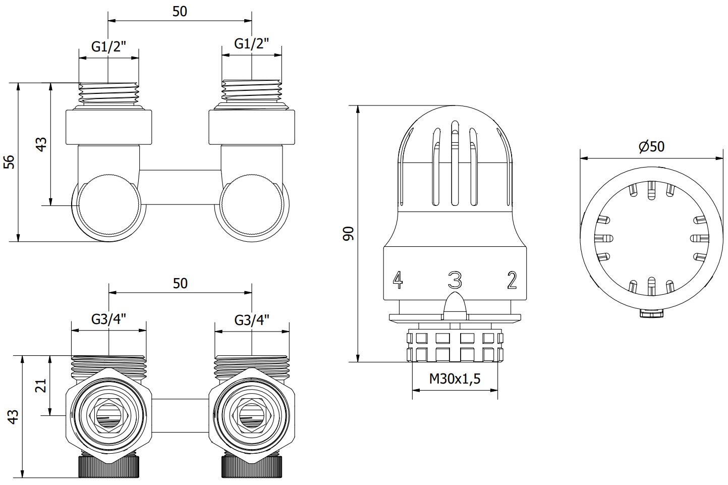Diamètre de raccordement de la vanne: G 1/2" et G 3/4"
