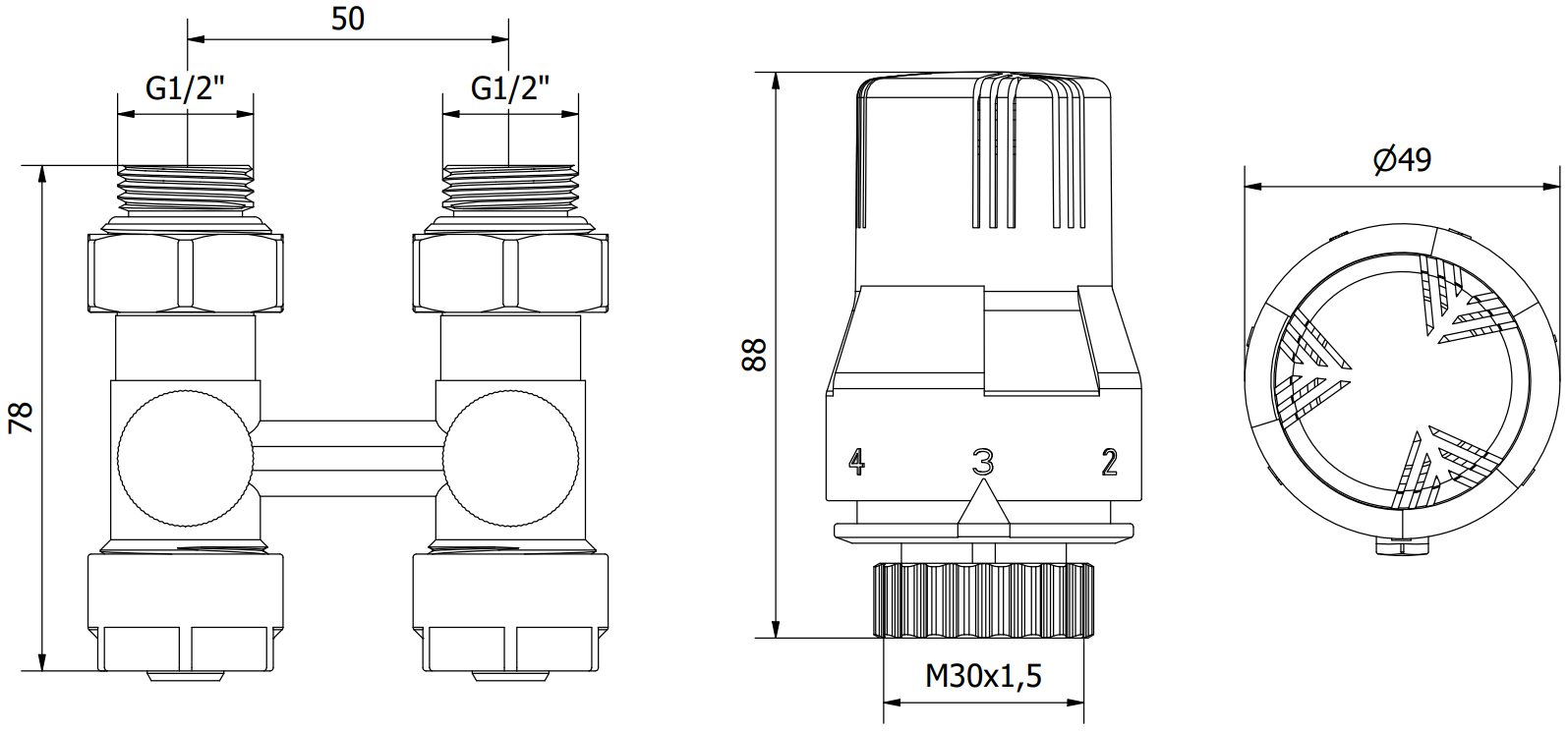 Vanne de radiateur d'alimentation et d'arrêt