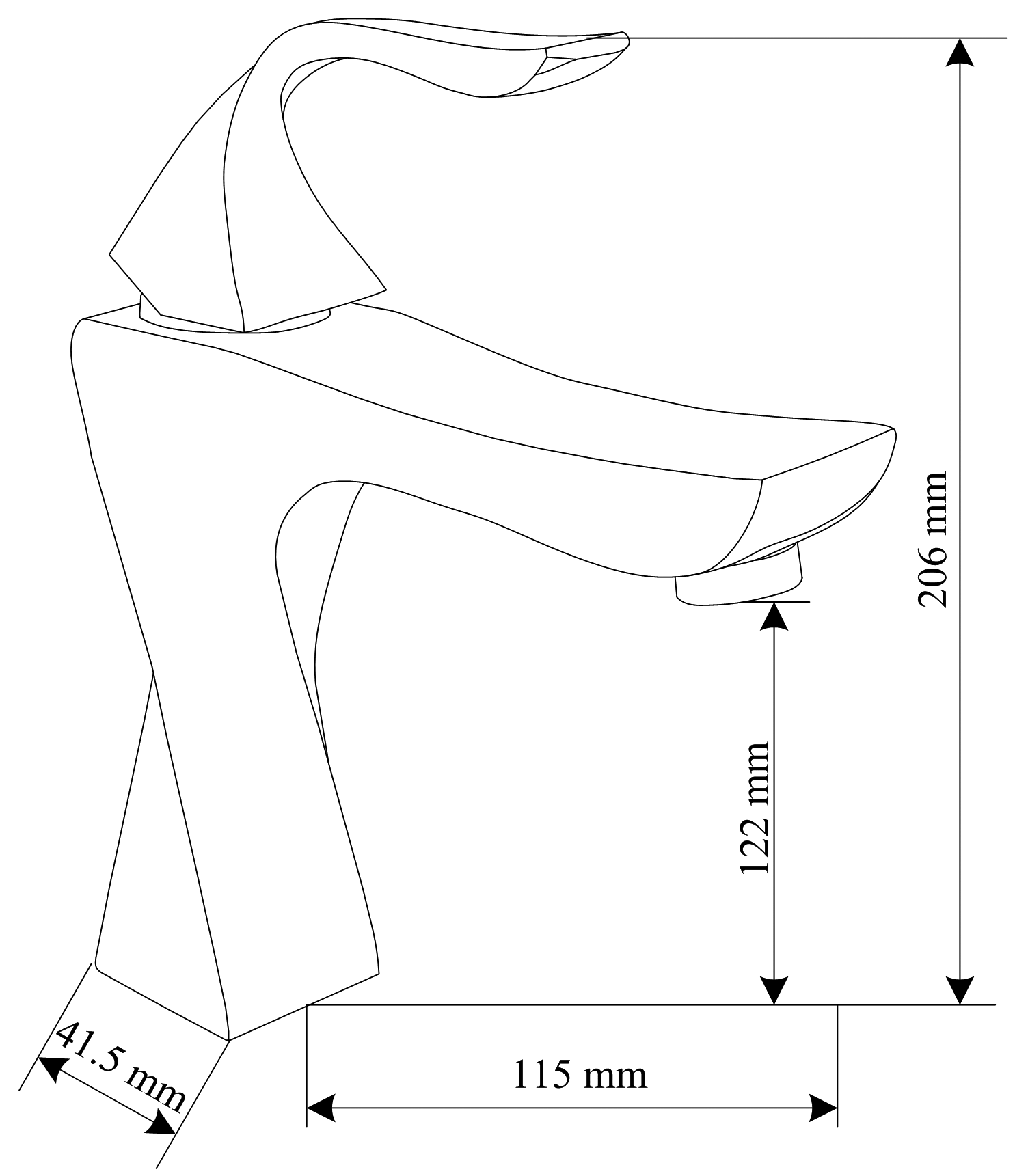 Portée du bec : 115 mm