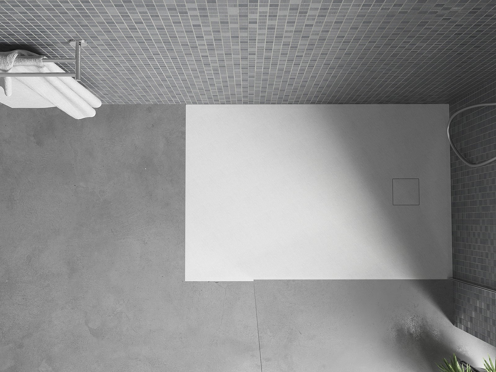 La surface du receveur de douche rappelle par sa structure la pierre. Elle constitue une combinaison exceptionnelle d'un aspect naturel et d'un aménagement intérieur moderne. Elle ajoute du caractère, souligne l'esthétique et l'élégance de la décoration de la salle de bains et séduit par sa forme.