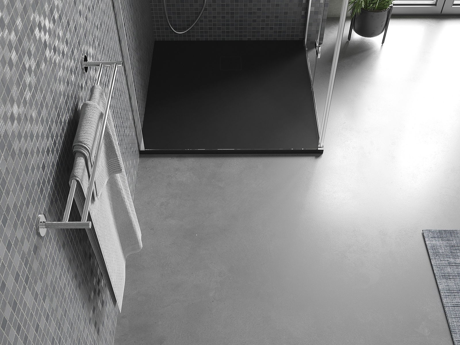 La surface du receveur de douche rappelle par sa structure la pierre. Elle constitue une combinaison exceptionnelle d'un aspect naturel et d'un aménagement intérieur moderne. Elle ajoute du caractère, souligne l'esthétique et l'élégance de la décoration de la salle de bains et séduit par sa forme.