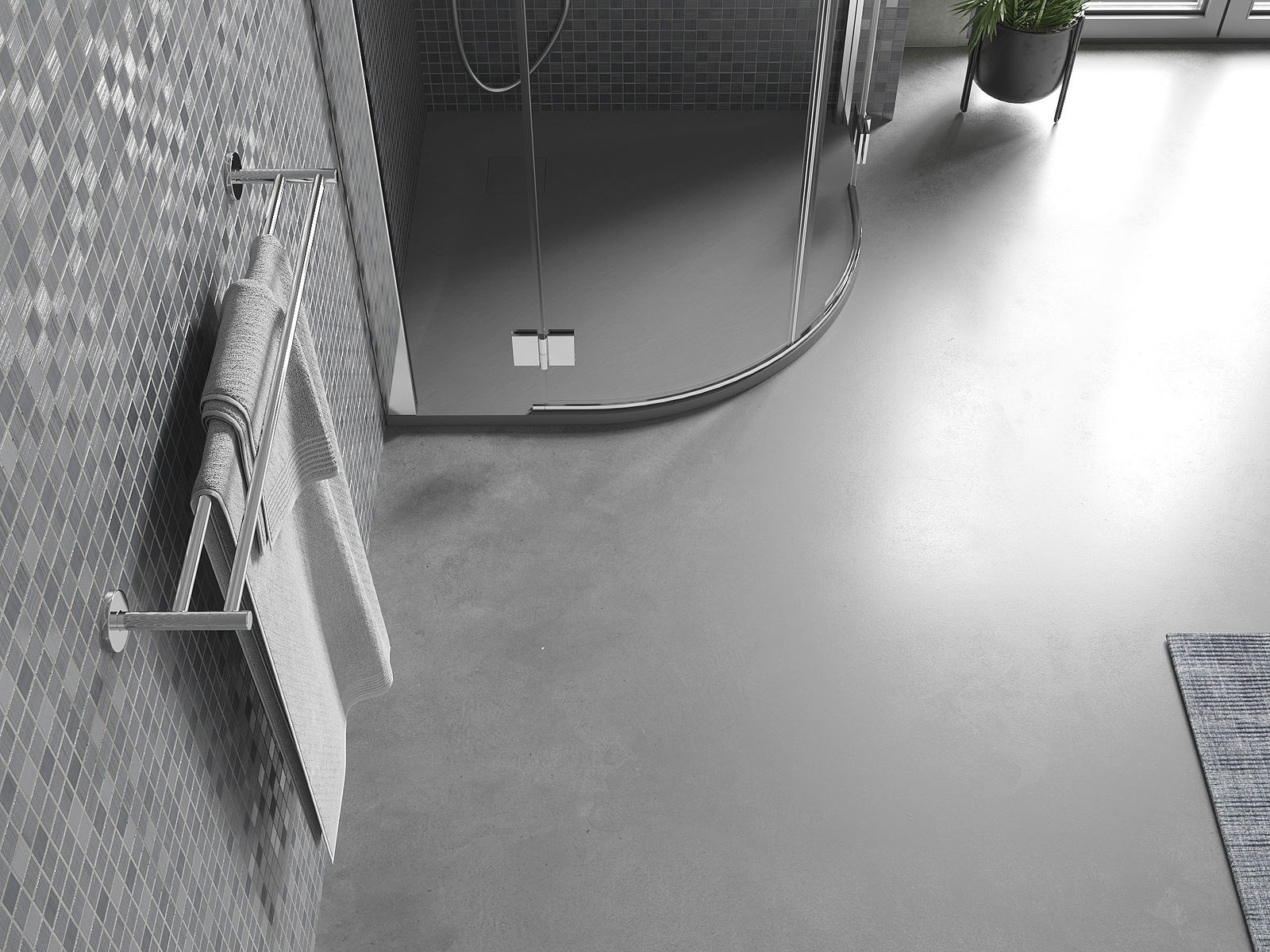 La surface du receveur de douche rappelle par sa structure la pierre. Elle constitue une combinaison exceptionnelle d'un aspect naturel et d'un aménagement intérieur moderne. Elle ajoute du caractère, souligne l'esthétique et l'élégance de la décoration de la salle de bains et séduit par sa forme.