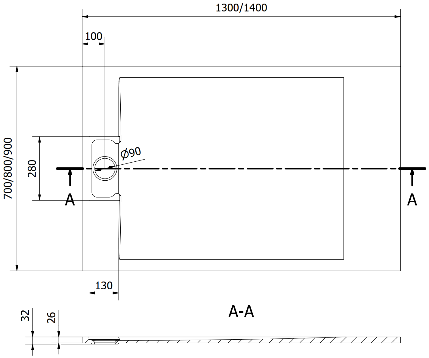 Diamètre de l'évacuation : 90 mm