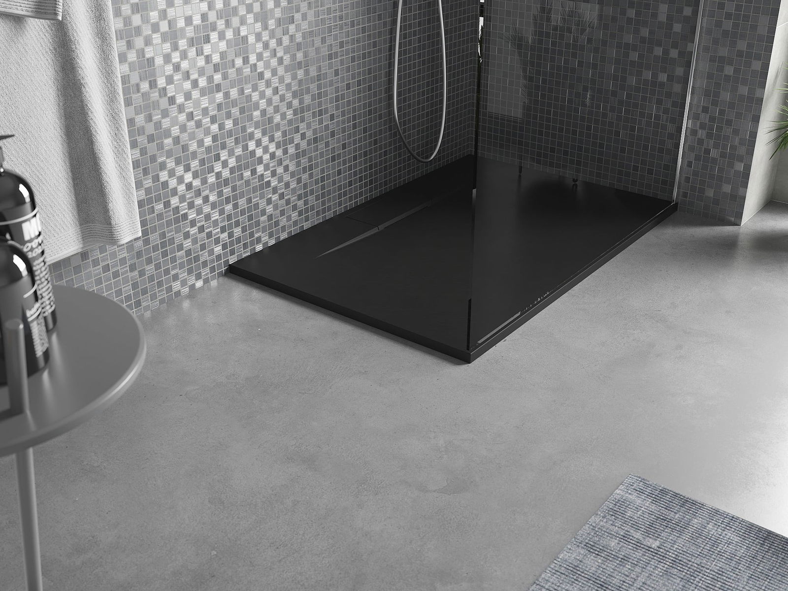 La surface du receveur de douche rappelle par sa structure la pierre. Elle constitue une combinaison exceptionnelle d'un aspect naturel et d'un aménagement intérieur moderne. Elle ajoute du caractère, souligne l'esthétique et l'élégance de la décoration de la salle de bains et séduit par sa forme.