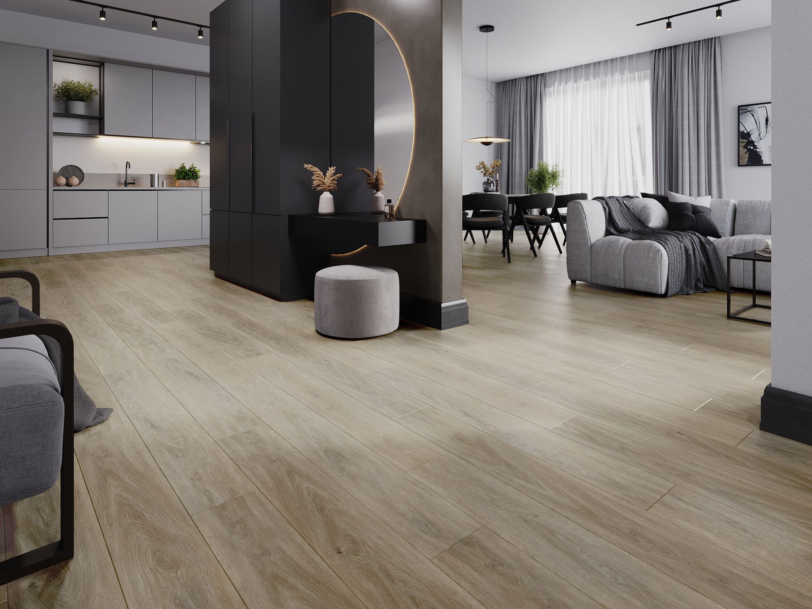 L'un des plus grands avantages du sol en vinyle est sa capacité à absorber les sons. Il réduit parfaitement le bruit des pas sur le sol et minimise le soi-disant "écho" dans la pièce. Cela est dû à plusieurs facteurs : notamment, les panneaux de vinyle sont flexibles et possèdent un support intégré qui assure l'amortissement.