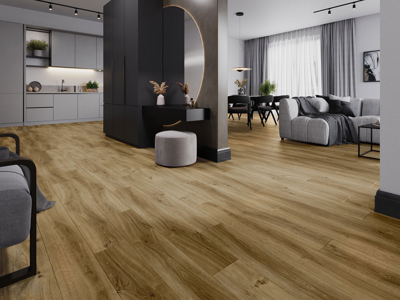 Les panneaux possèdent un joint à 4 côtés - chaque bord a été fraisée de manière à créer une jonction en forme de V après la pose. Ce design donne au sol une structure plus prononcée, ajoutant profondeur et caractère esthétique. Cet effet est particulièrement apprécié dans les aménagements modernes, où les détails soulignent l'aspect unique de l'intérieur.
