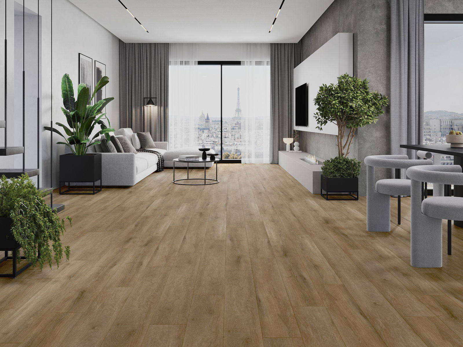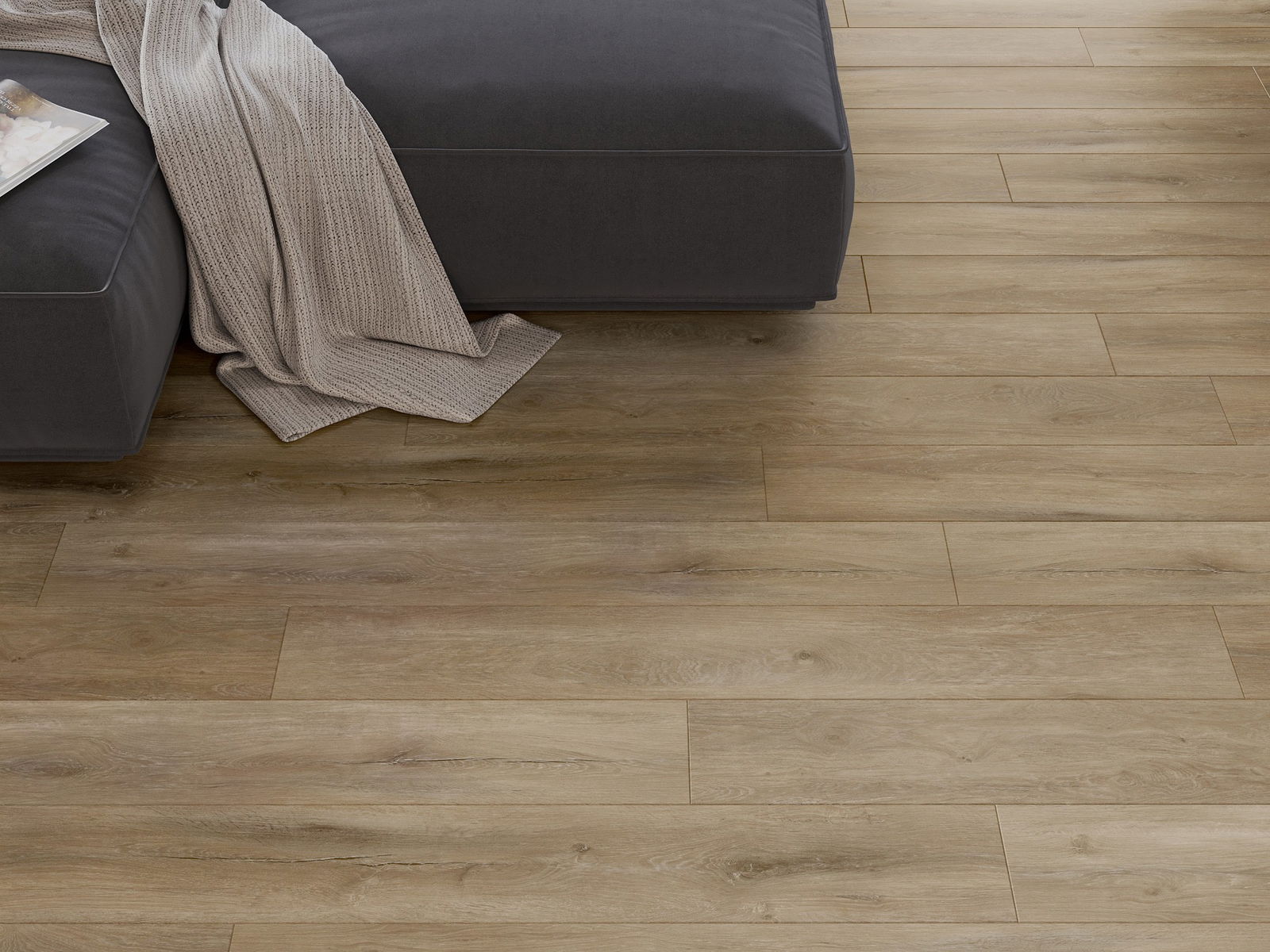 Les panneaux possèdent un joint à 4 côtés - chaque bord a été fraisé de telle manière que, une fois posé, il forme une connexion en forme de V. Ce design confère au sol une structure plus prononcée, lui donnant de la profondeur et un caractère esthétique. Cet effet est particulièrement apprécié dans les aménagements modernes, où les détails soulignent l'aspect unique de l'intérieur.