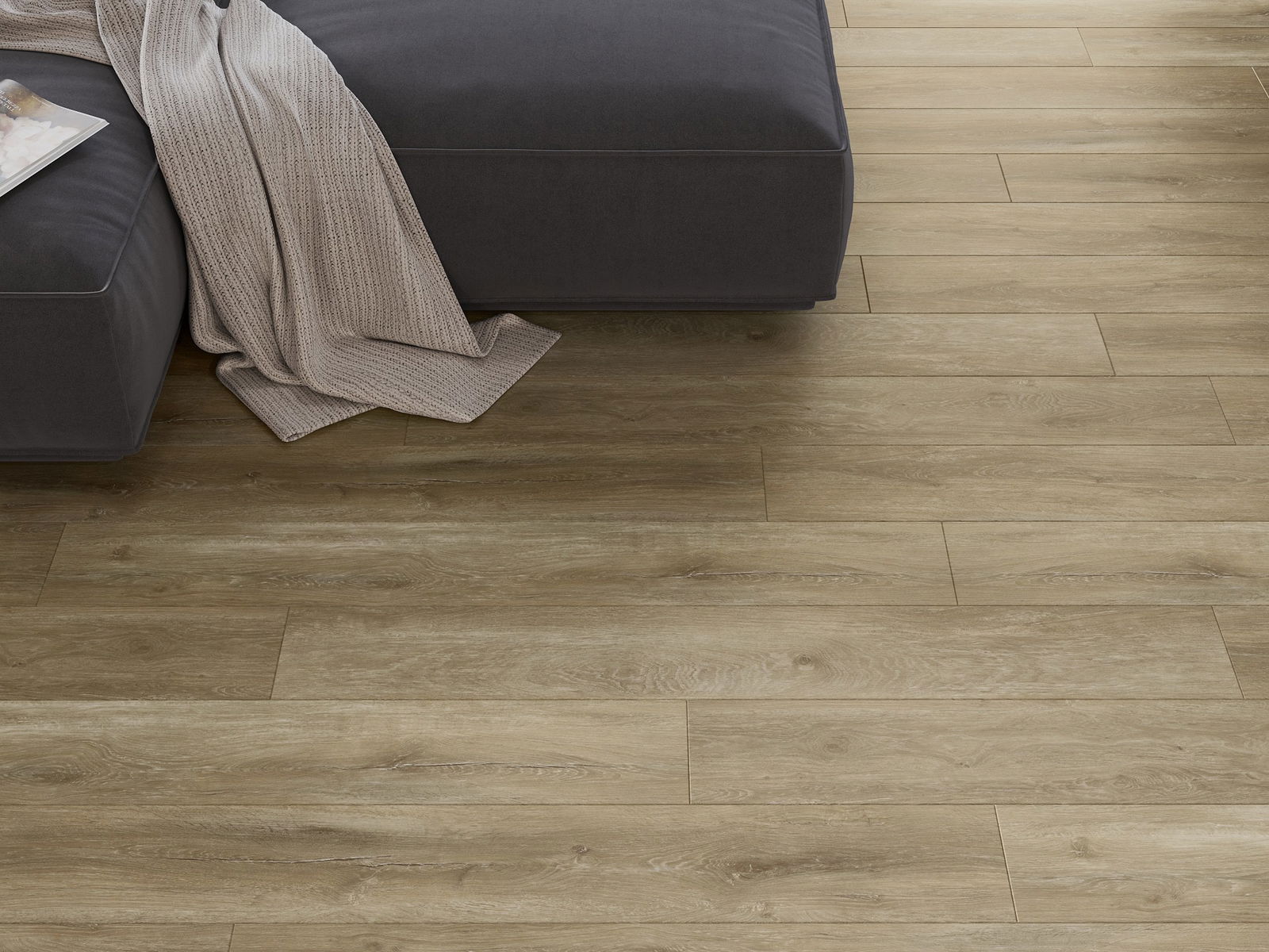 Les panneaux possèdent un joint à 4 côtés - chaque bord a été fraisé de telle manière que, une fois posé, il forme une connexion en forme de V. Ce design confère au sol une structure plus prononcée, lui donnant de la profondeur et un caractère esthétique. Cet effet est particulièrement apprécié dans les aménagements modernes, où les détails soulignent l'aspect unique de l'intérieur.