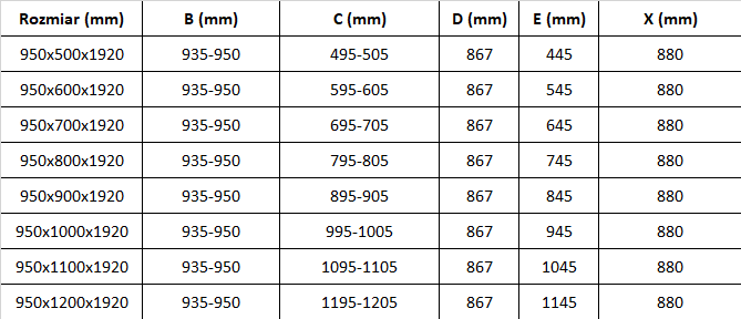 Taille: 95x80 cm (porte 95 cm, paroi 80 cm)