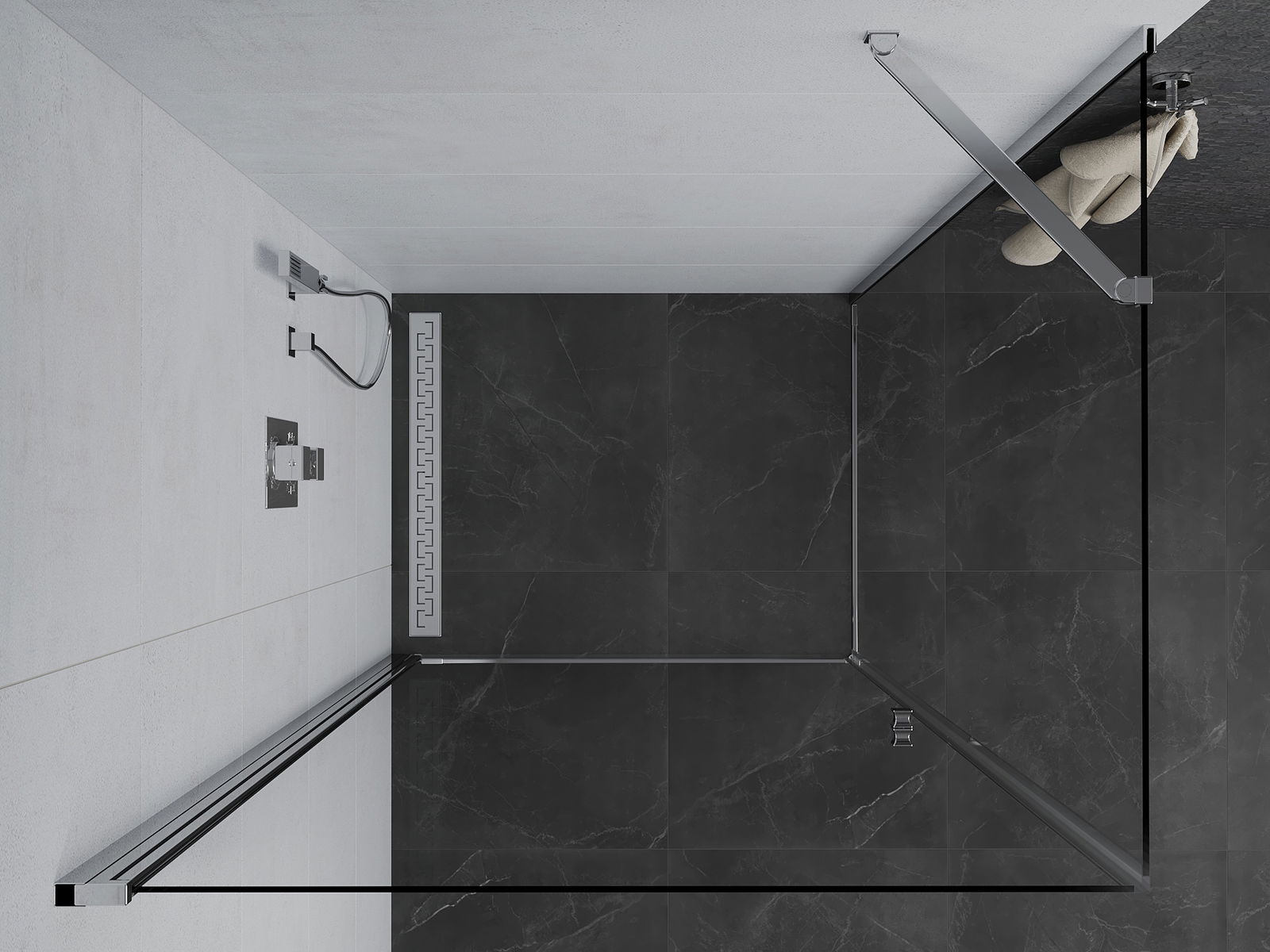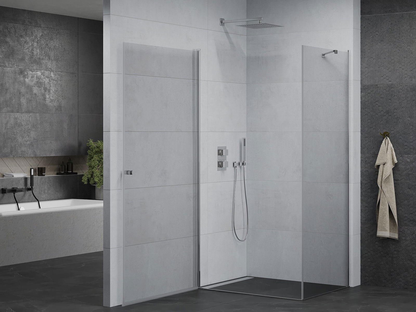 La poignée pratique et confortable est fabriquée en métal durable et résistant. Sa forme à la mode, combinée à une finition assortie à la couleur des profilés, donne à l'ensemble un aspect moderne et stylé, soulignant l'esthétique de chaque salle de bain.