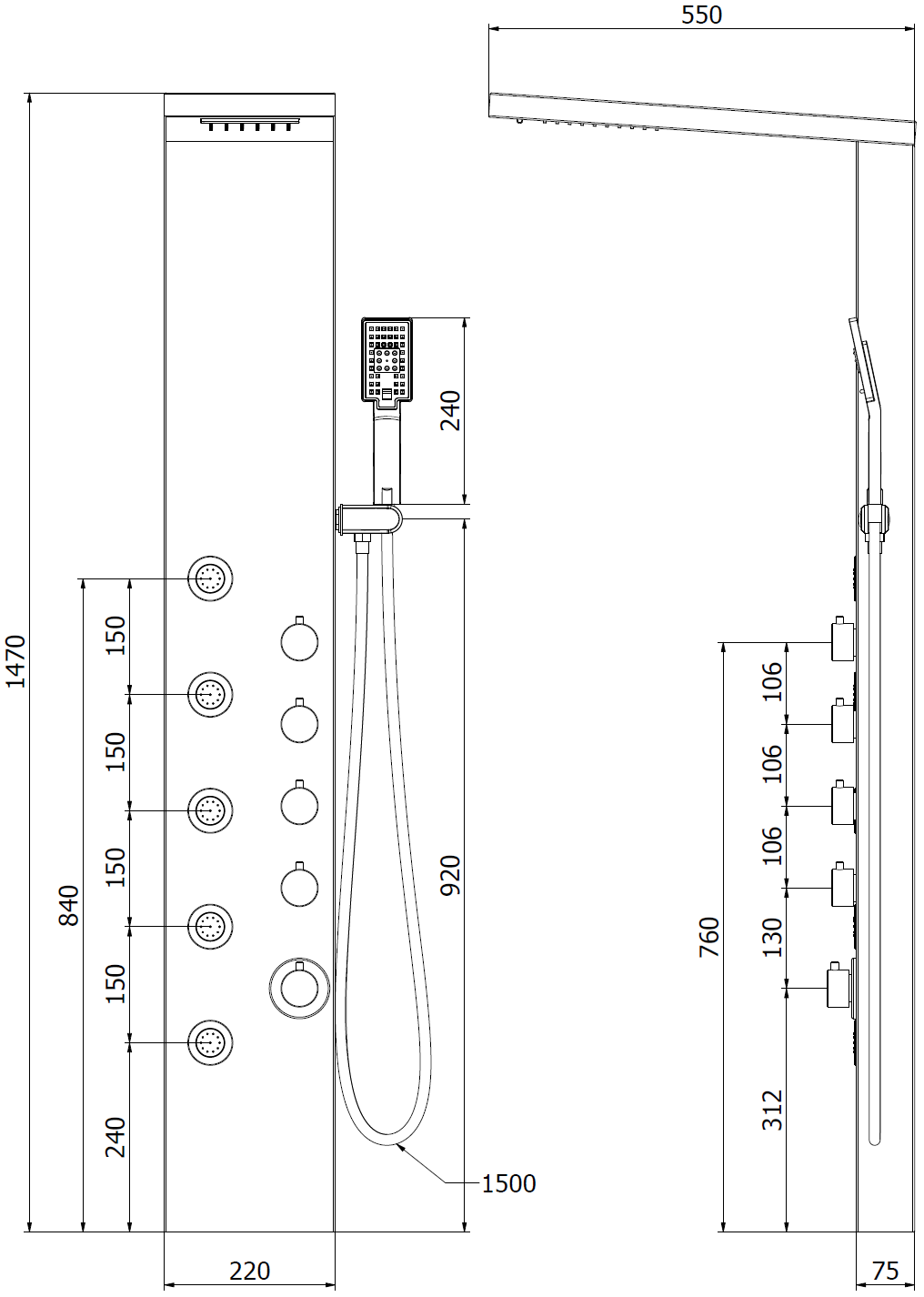 Mexen Lando panneau de douche, noir - 7611-04-70