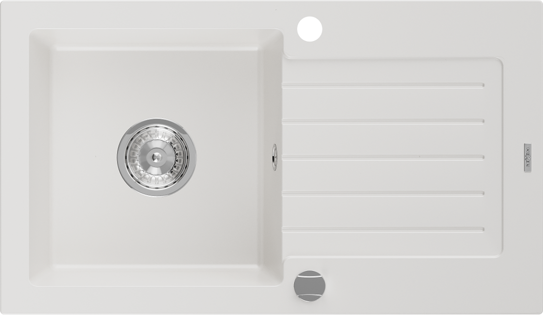 Mexen Pablo évier en granit 1 cuve avec égouttoir 752 x 436 mm, blanc, siphon chromé - 6510751010-20