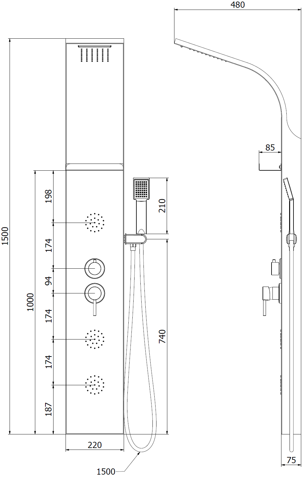 Mexen Borg panneau de douche, noir - 7615-03-70