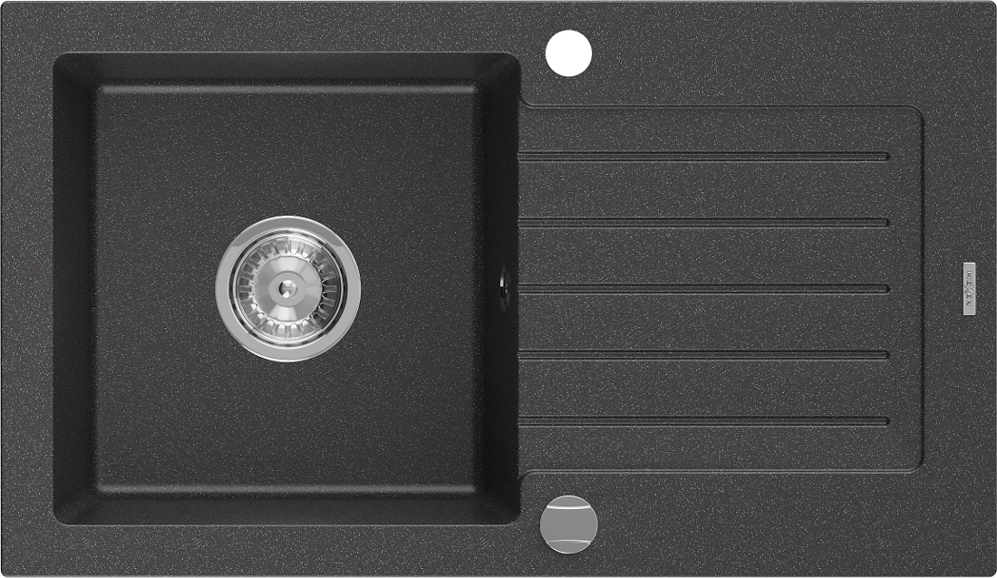 Mexen Pablo évier en granit 1 bac avec égouttoir 752 x 436 mm, noir moucheté, siphon chromé - 6510751010-76