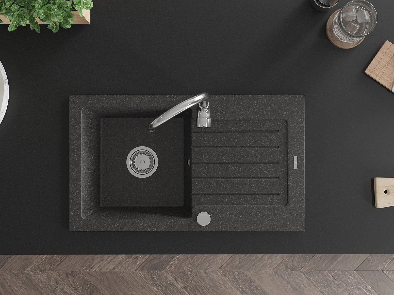 L'évier est fabriqué en granit de haute qualité. Il constitue un complément élégant et surtout pratique pour toute cuisine, quel que soit son style. La qualité et la durabilité du granit garantissent de nombreuses années d'utilisation.