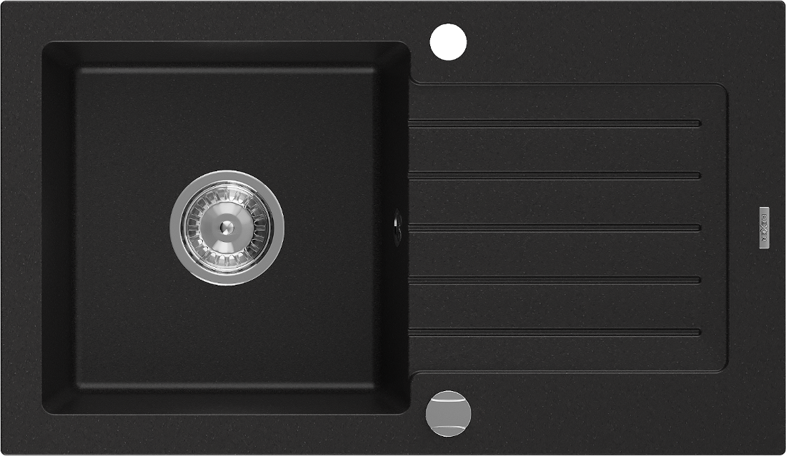 Mexen Pablo évier en granit 1 bac avec égouttoir 752 x 436 mm, noir, siphon chromé - 6510751010-77