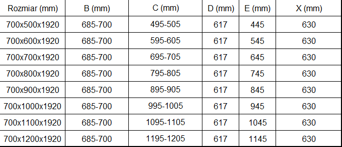 Taille: 70x90 cm (porte 70 cm, paroi 90 cm)