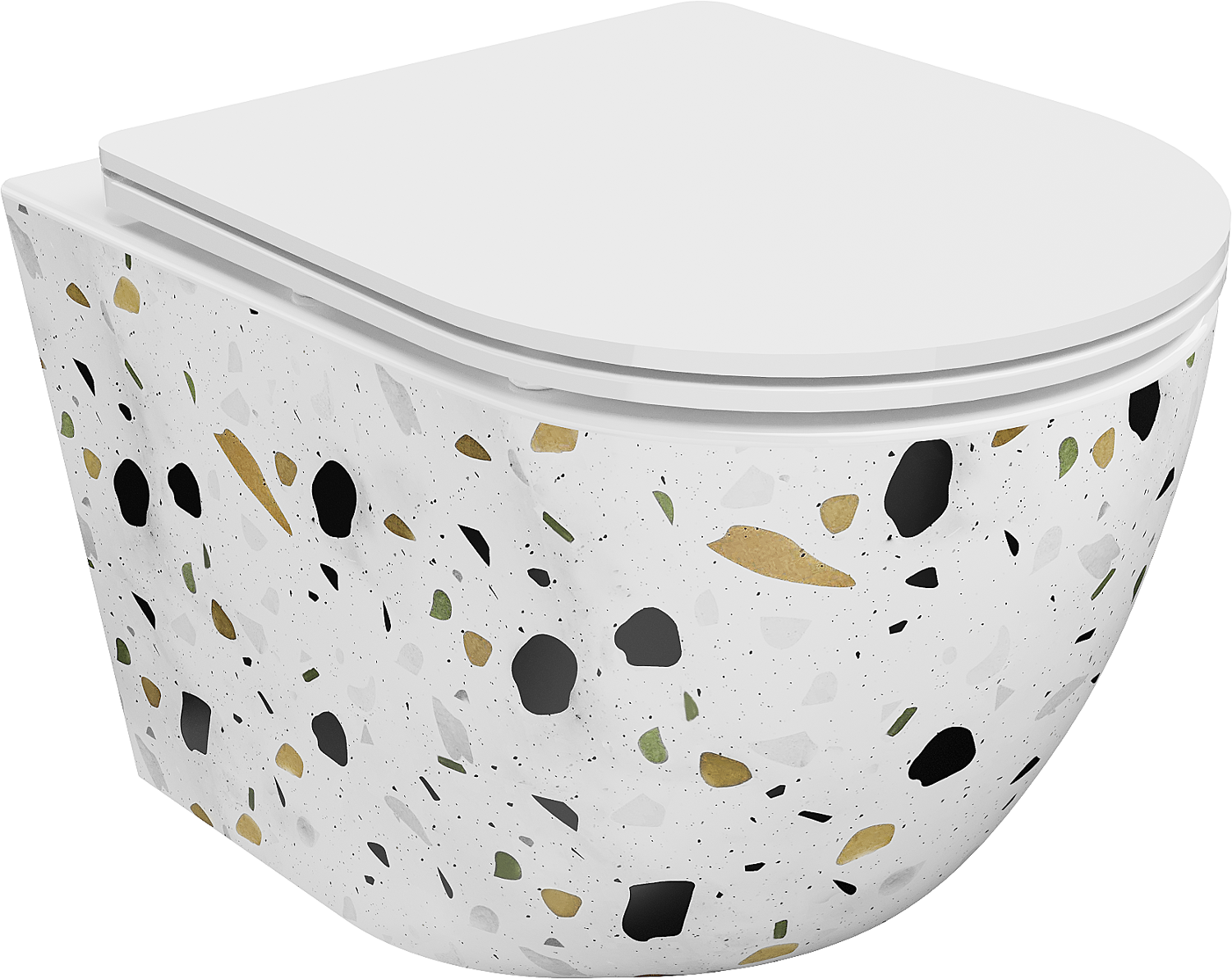 Mexen Lena cuvette WC sans bride avec abattant slim à descente progressive, duroplast, pierre blanche terrazzo - 30224096