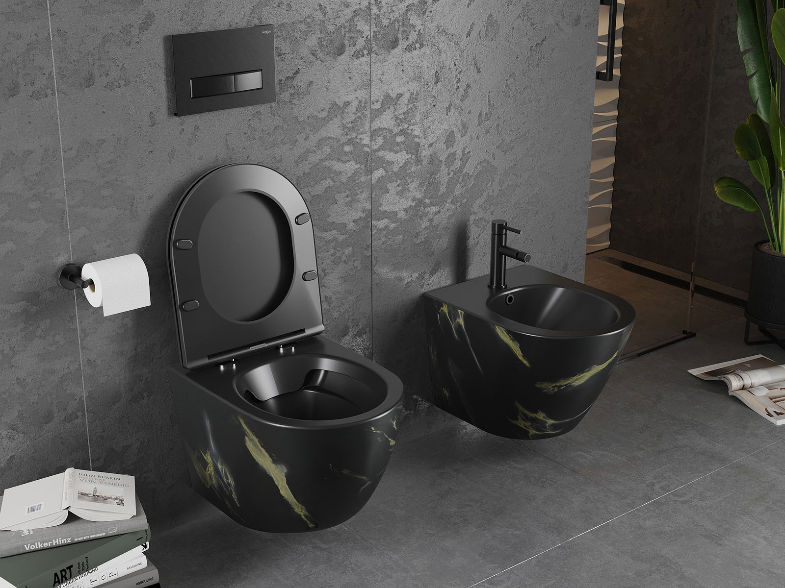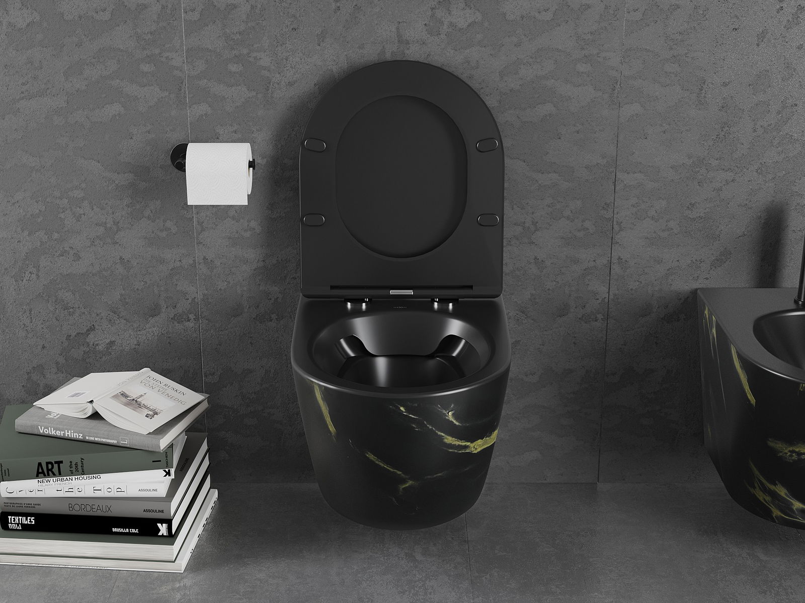 Mexen Lena cuvette WC sans bride avec abattant à descente lente slim, duroplast, pierre noire - 30224098