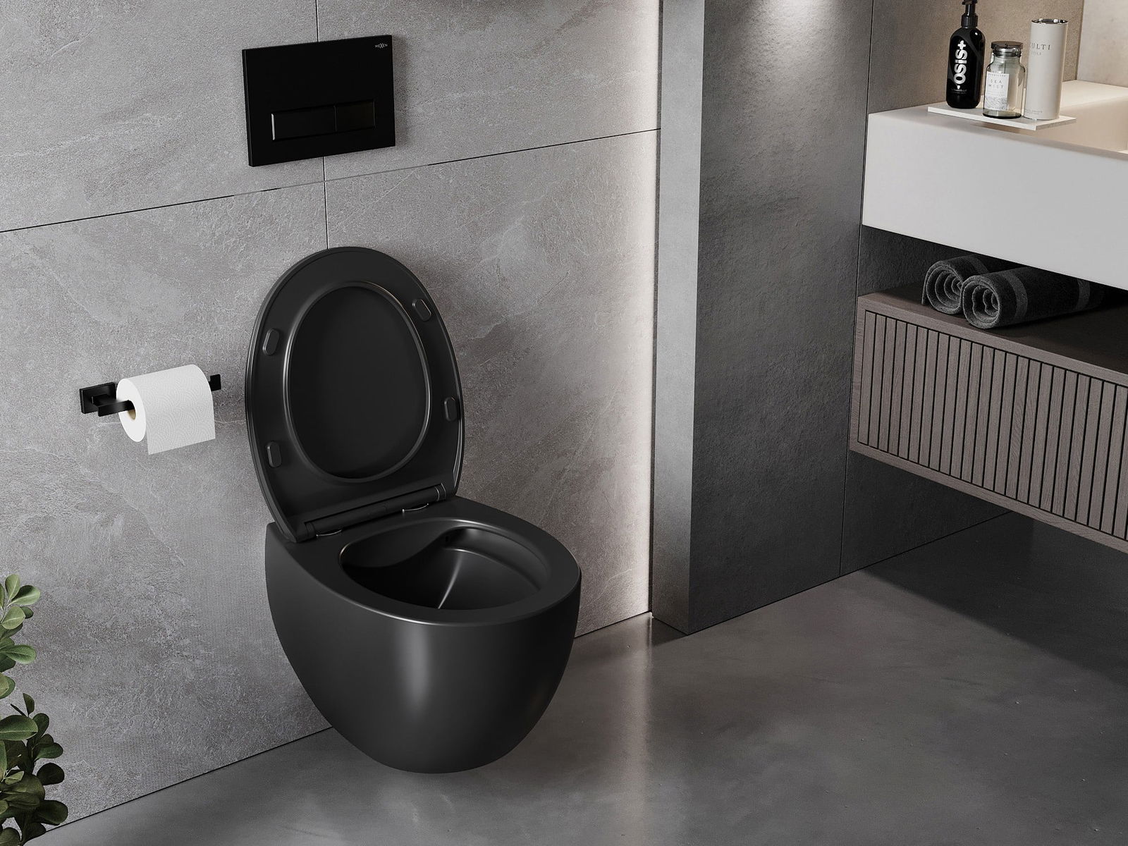 Mexen Egg cuvette WC Rimless avec abattant à descente lente slim, duroplast, noir mat - 30245070
