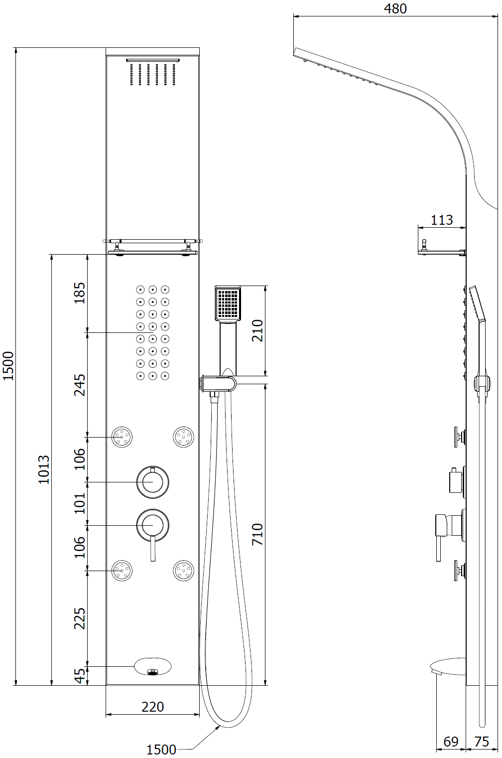 Hauteur : 148 cm