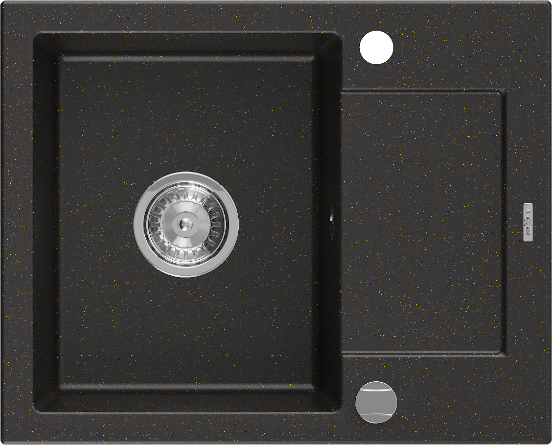 Mexen Enzo évier en granit 1 bac avec égouttoir 576 x 465 mm, noir/or métallisé, siphon chromé - 6506571005-75