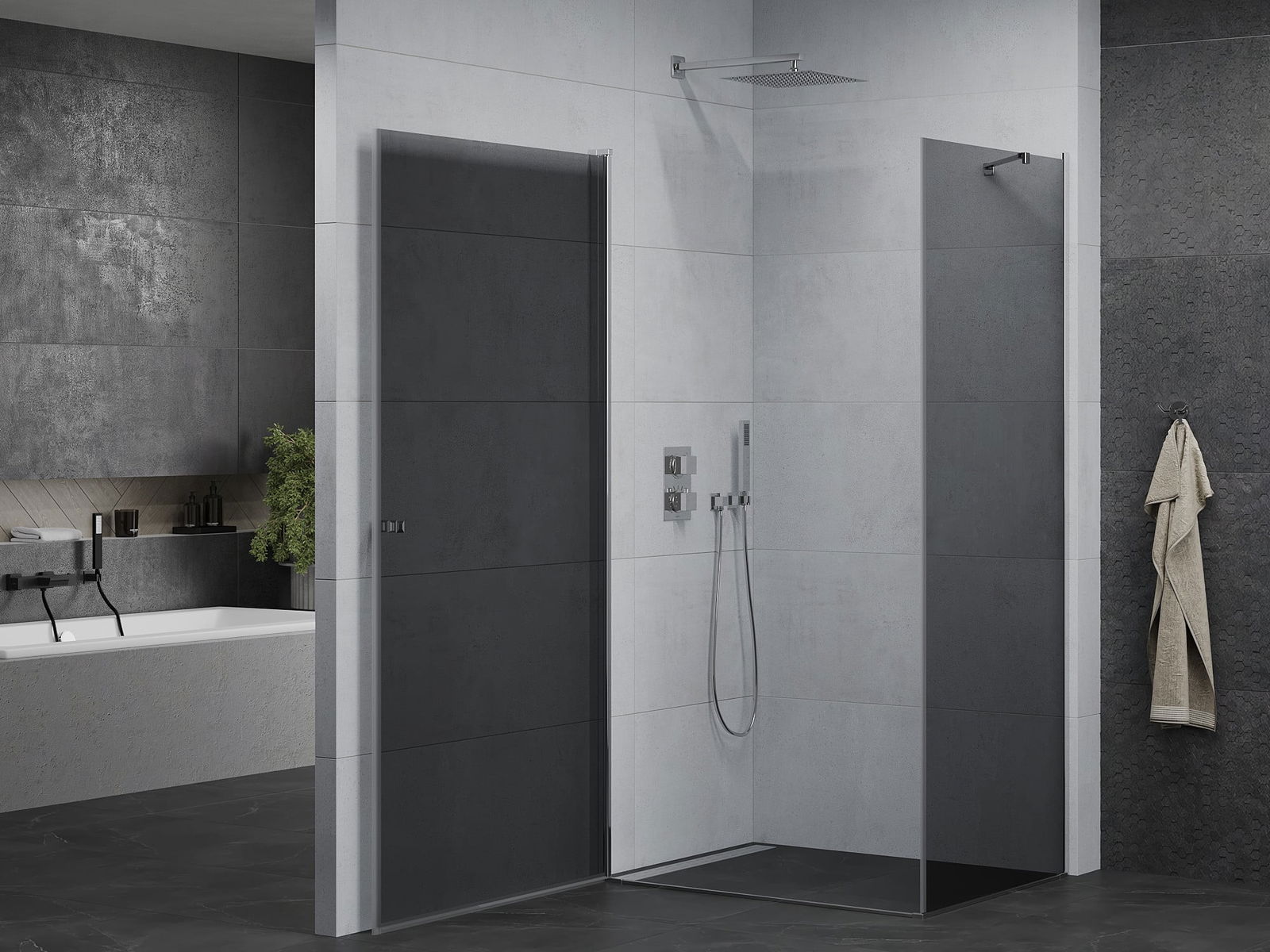 La poignée pratique et confortable est fabriquée en métal durable et résistant. Sa forme à la mode, combinée à une finition assortie à la couleur des profilés, donne à l'ensemble un aspect moderne et stylé, soulignant l'esthétique de chaque salle de bain.